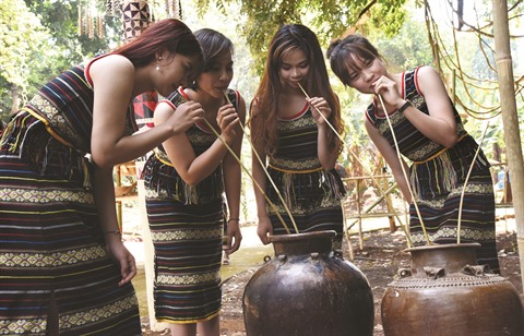 Le ruou cân (alcool de riz à siroter avec une paille de bambou) est une boisson populaire lors des fêtes des ethnies minoritaires du Tây Nguyên (hauts plateaux du Centre). Le ruou cân des Ê dê est appelé kpiê ché, ce qui signifie que l’alcool est contenu dans des jarres en grès.