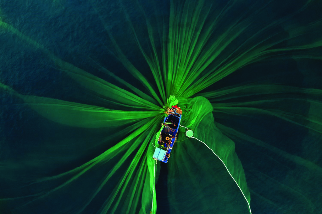 | Les pêcheurs prennent des anchois tôt le matin. D’en haut, la scène est absolument magnifique. |