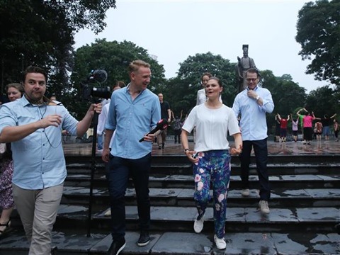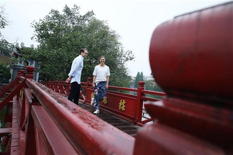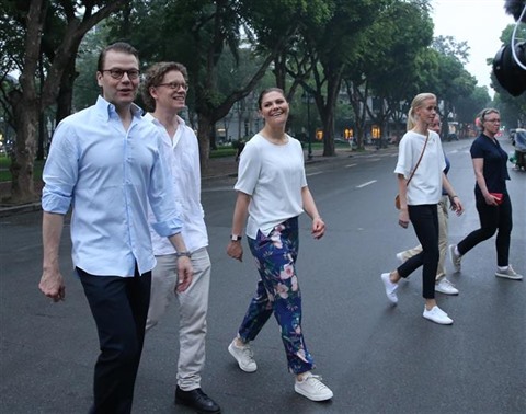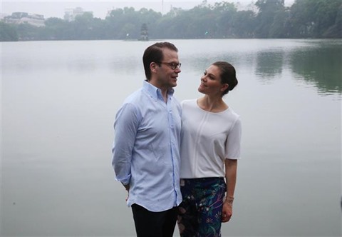 | La princesse héritière de Suède, Victoria Ingrid Alice Désirée, et son époux se promènent autour du lac de l’épée restituée, au coeur de la capitale Hanoï. Photo: VNA/CVN |