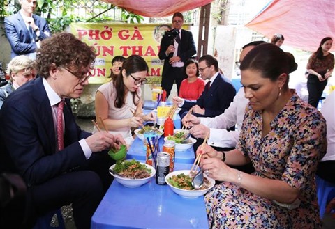 | La princesse héritière Victoria savoure le bun bo Nam bô. Photo: VNA/CVN |