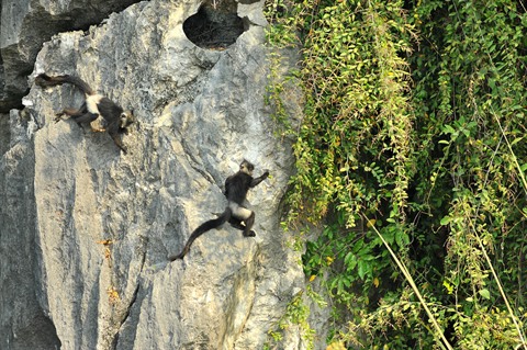 | Langurs de Delacour (Trachypithecus delacouri), une espèce de primate menacée d’extinction. |