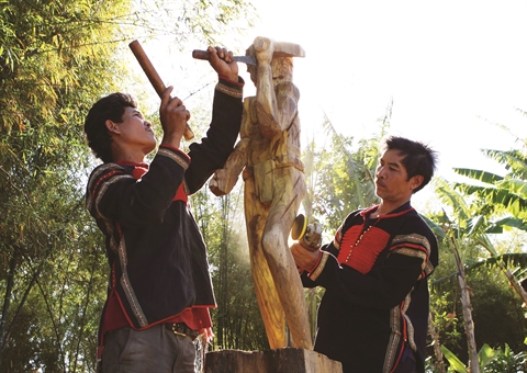 | Ensemble de statues appelé «Les frères» dans la zone touristique de la cascade de Pa Sy, province de Kon Tum. |