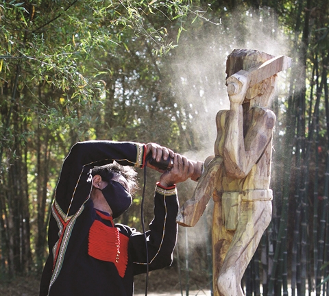 | Une statue de facture plus contemporaine dans la zone touristique de Ko Tam, province de Dak Lak. |