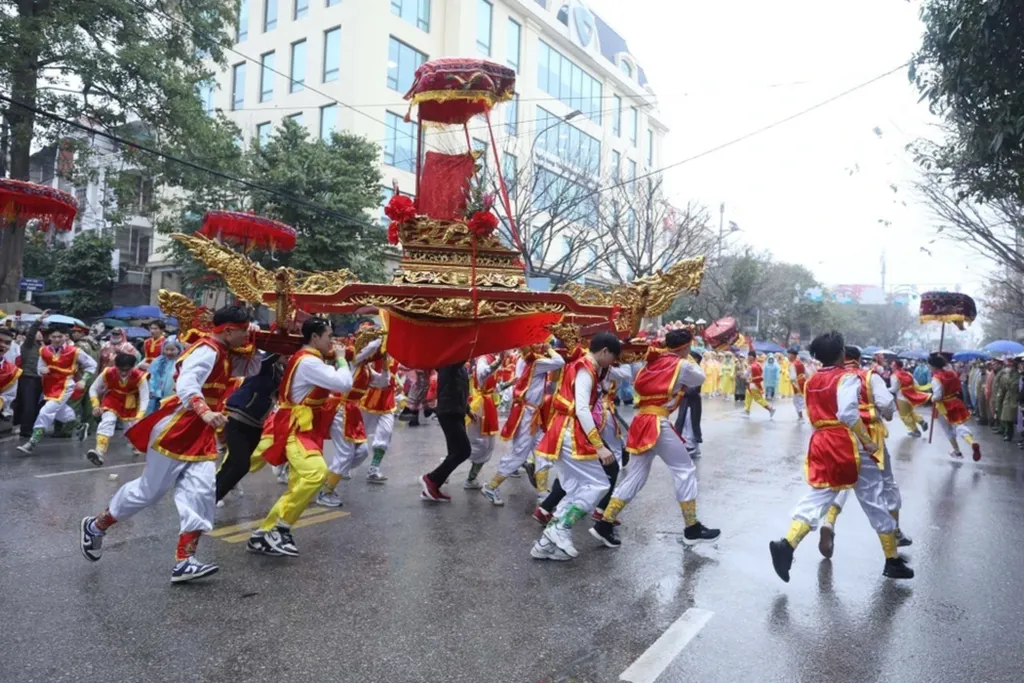 | La fête comprend de nombreuses activités, notamment une cérémonie de culte, une procession de palanquins, des danses du lion, des jeux folkloriques et des spectacles artistiques. Photo: VNA |