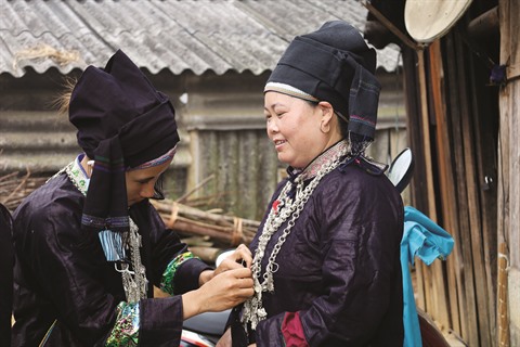 | Les Nùng Dín adorent couvrir leurs costumes traditionnels de sculptures en argent. |