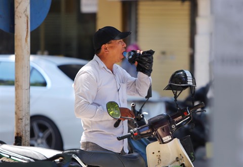 | Un travailleur boit de l’eau durant l’heure de repos. Photo: Thành Dat/VNA/CVN |