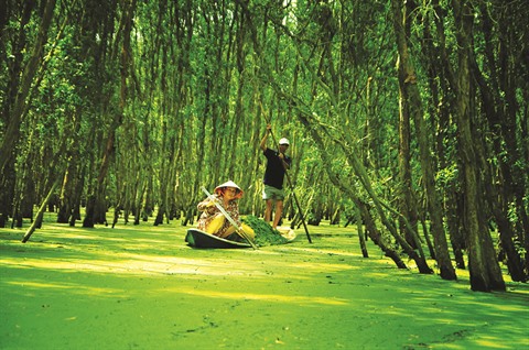 | La forêt de cajeputiers de Trà Su à la saison des crues. |