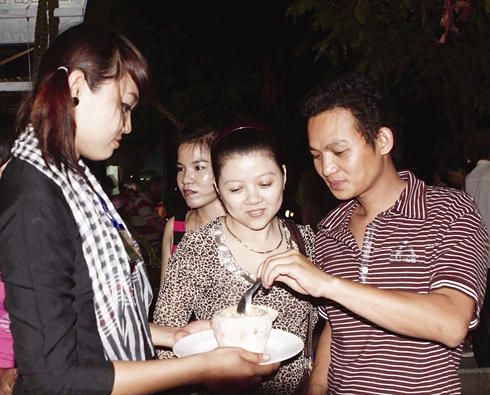| Des visiteurs goûtent des plats au festival d'art culinaire de Bên Tre, du 6 au 9 avril. |