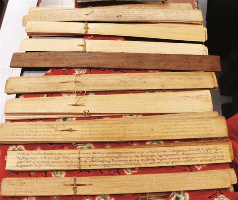 | Vieux de plus de 100 ans, les ensembles du sutra sont préservés à la pagode de Xvayton, district de Tri Tôn. |