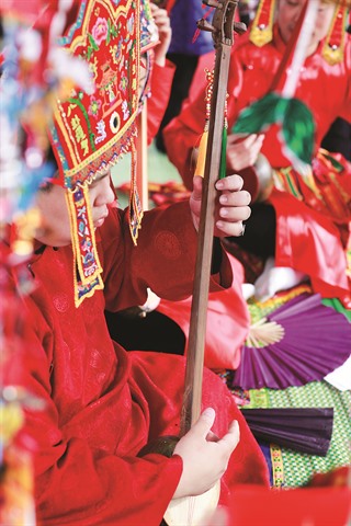 | Le "lâu then" comprend chants, danses et théâtre. |