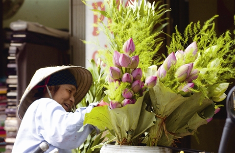 | Chargés sur des vélos, des bouquets sont vendus dans les rues. Photo : Anh Tuân/VNA/CVN |
