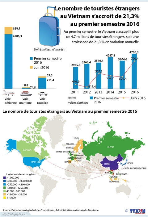 Au premier semestre, le Vietnam a accueilli plus de 4,7 millions de touristes étrangers, soit une croissance de 21,3% en variation annuelle.
