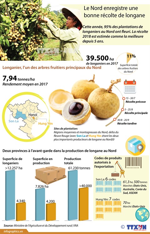 Cette année, 95% des plantations de longaniers au Nord ont fleuri. La récolte 2018 est estimée comme la meilleure depuis cinq ans.