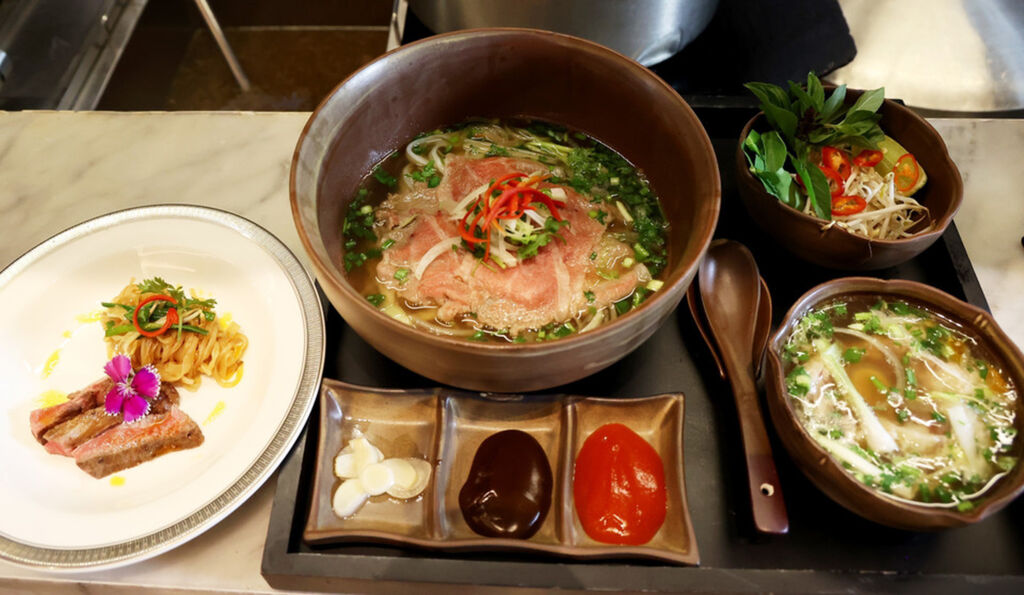 | Le restaurant Oriental Pearl, situé au 66e étage du Vinpearl Landmark 81 à Hô-Chi-Minh-Ville, a entrepris de rehausser le "phở", ce plat national emblématique, en le transformant en une expérience culinaire de luxe. |