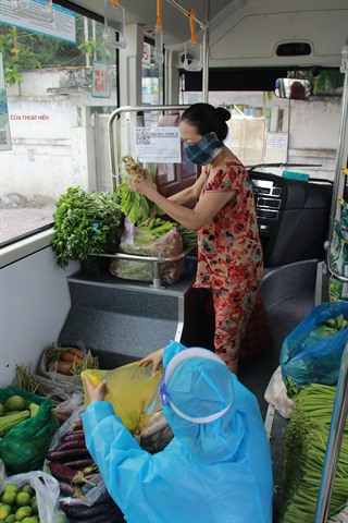 | Dans un bus servant de point de vente ambulant à Hô Chi Minh-Ville. |