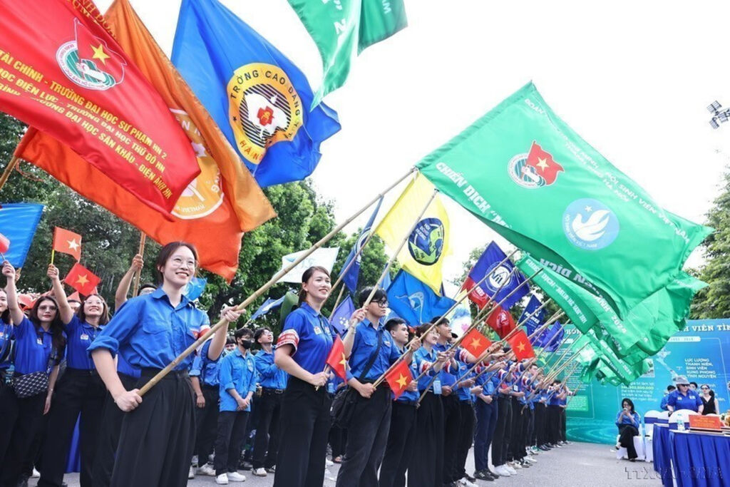 | Les membres de l'Union de la jeunesse de Hanoï lors de la cérémonie de lancement de la campagne des étudiants volontaires "Été vert" 2024. |