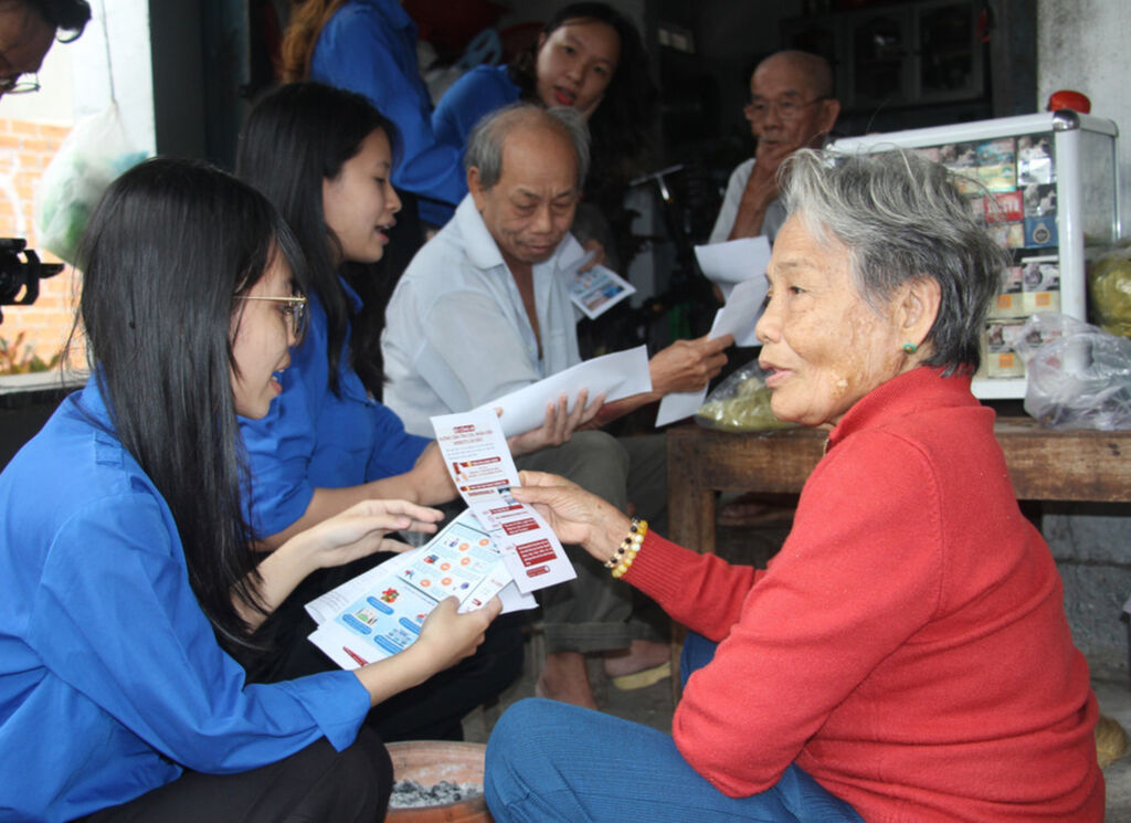 | Des membres de l’Union provinciale de la jeunesse de Khanh Hoà (Centre) aident les gens à accéder aux technologies de l’information, à la transformation numérique et aux connaissances sur le cyberespace. |