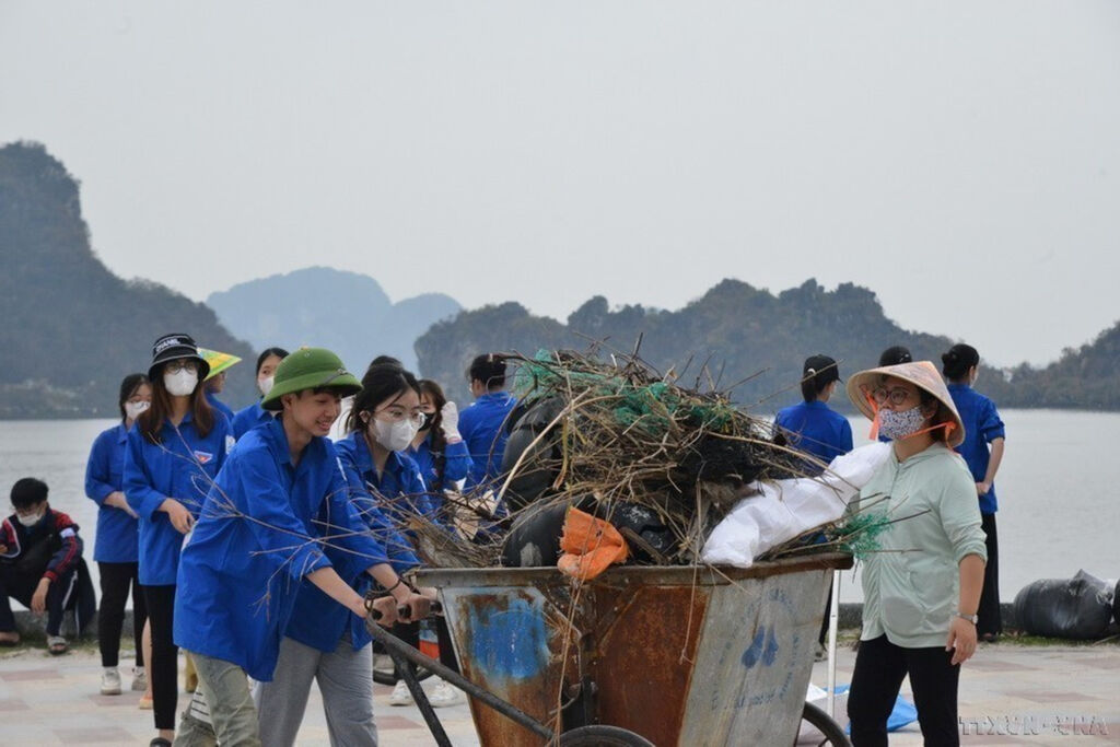 | Les membres de l'Union de la jeunesse de la ville de Ha Long, province de Quang Ninh (Nord), nettoient l'environnement après la tempête N°3, le 14 septembre 2024. |