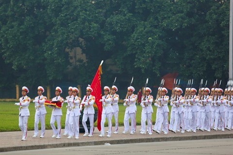 | À partir de 06h00 du 6 octobre, le drapeau rouge frappé d’une étoile d’or sur la place Ba Dinh, au cœur de Hanoï, a été abaissé en hommage à l’ancien secrétaire général du Parti communiste du Vietnam Dô Muoi. Photo: VNA/CVN |
