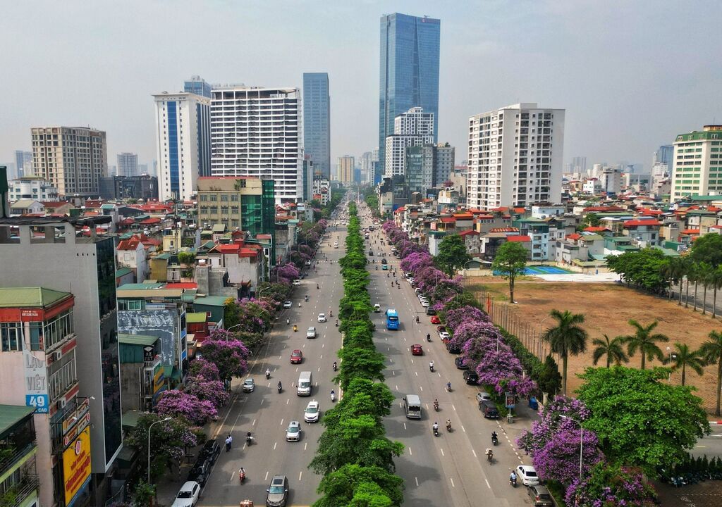 | Les arbres de "bang lang" offrent non seulement beauté, mais aussi ombre fraîche au paysage urbain. |