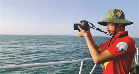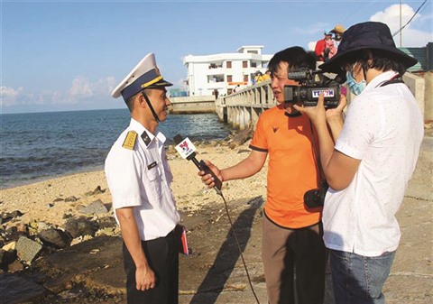 | Deux reporters de la chaîne de télévision de l’Agence Vietnamienne d’Information (Vnews) en mission sur l’archipel de Truong Sa (Spratly). |