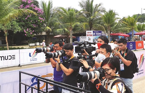 | Les journalistes travaillent aux 31es Jeux d’Asie du Sud-Est, organisés en mai dernier au Vietnam. |