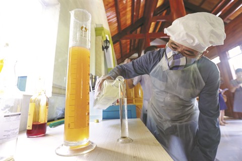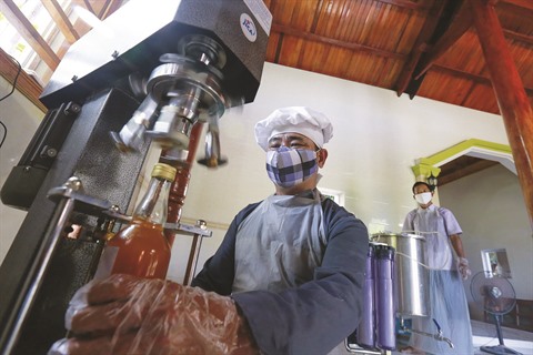 | Un cultivateur du village de Pha prépare de l’essence d’orange. |