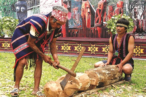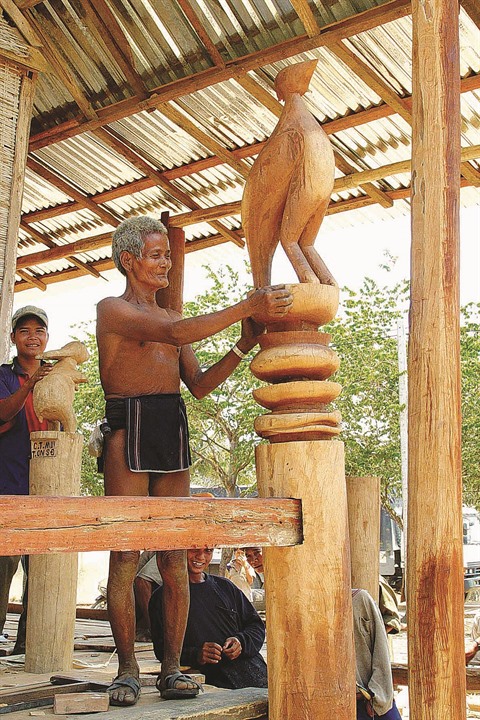 Cet art ancestral occupe une place importante dans la vie spirituelle des ethnies minoritaires du Tây Nguyên. Avec habileté, les artisans transforment un tronc d’arbre en statuette, en puisant leur imagination dans la culture et les croyances traditionnelles de leur terroir.