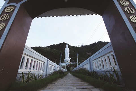 La porte principale de la pagode Duc a été construite dans une cavité du mont Giêng Tiên (culminant à 80 m).