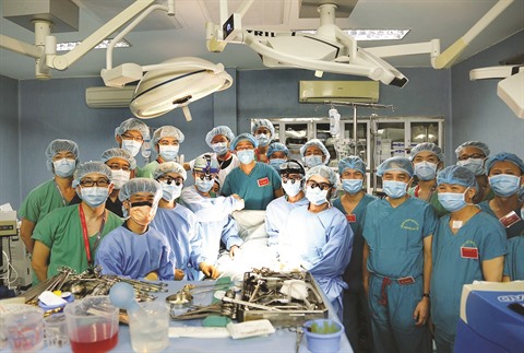 | Les médecins de l’Hôpital militaire 103 à Hanoï après une greffe pulmonaire d’un donneur vivant, le 21 février 2017. |