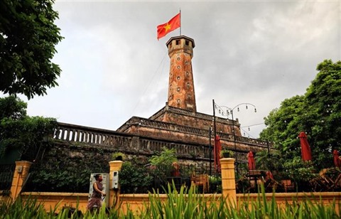 | Le mât du drapeau de Hanoï est composée de trois niveaux et d'une tour en forme de pyramide avec un escalier intérieur en colimaçon menant au sommet. Photo : Thành Dat/VNA/CVN |