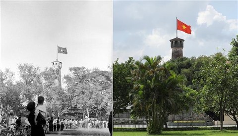 | Après le succès de la Révolution d'août, le drapeau rouge à l’étoile jaune fut accroché pour la première fois au mât du drapeau de Hanoï, comme une fierté marquant un tournant dans l'histoire de la nation. |
