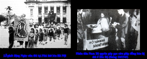 | Le 16 septembre 1945, une file de personnes s'aligna sur la place de l'Opéra de Hanoï pour apporter leurs contributions à la préservation de l’indépendance. Photo : Archives/CVN |