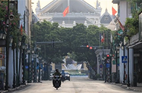 | La rue Tràng Tiên conserve encore des caractéristiques de l'architecture française d’antan. Photo : Thành Dat/VNA/CVN |