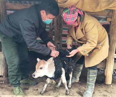 | Des éleveurs de la province de Cao Bang (Nord) protègent leurs animaux domestiques du froid. |