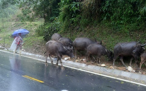 | Un habitant de la ville de Sa Pa (province de Lào Cai, Nord) emmène son troupeau de buffles dans les basses terres pour éviter le froid. |