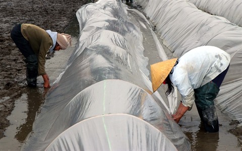 | Des paysans de la province de Hà Tinh (Centre) protègent des jeunes plantations contre le gel. |