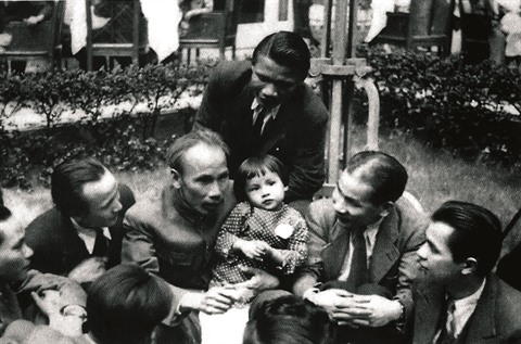| Le Président Hô Chi Minh rencontre des Viêt kiêu lors de sa visite en France en 1946. |