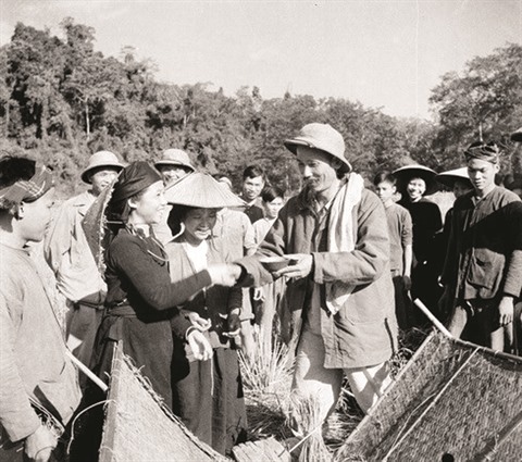 | L’Oncle Hô aux côtés de paysans de la province de Bac Kan (Nord) en 1950. |