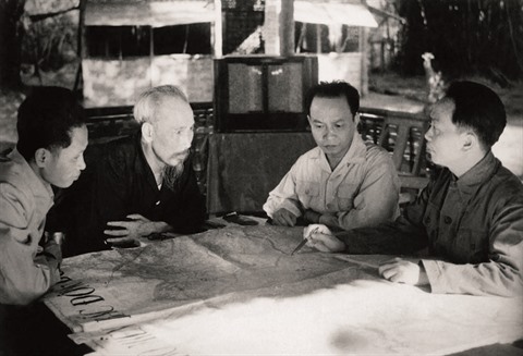 | Le Président Hô Chi Minh et les membres de la Permanance du Comité central du Parti se réunissent dans la province de Thai Nguyên (Nord), en 1953. |