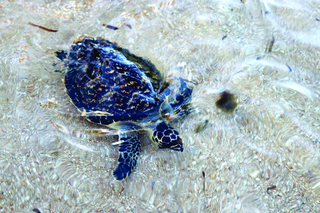 | Tortue secourue et relâchée en mer au Parc national de Núi Chúa, appartenant à la Réserve mondiale de biosphère homonyme. |