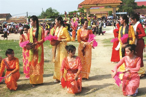 | Filles Cham exécutant des danses traditionnelles lors d’une fête. |