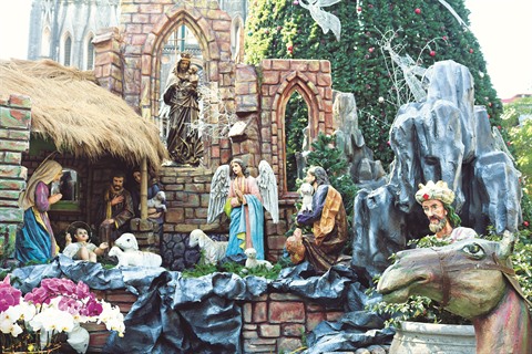 | Crèche grandeur nature installée sur le parvis de la Grande Cathédrale. |