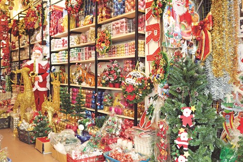 | Magasins pleins de marchandises au service de Noël. |