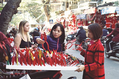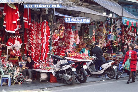 | Une myriade d’objets décoratifs sont vendus dans la rue Hàng Ma, à Hanoï. |