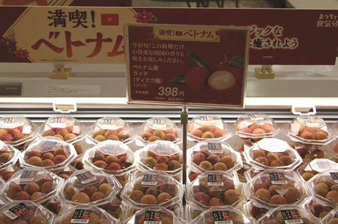 | Litchis de Luc Ngan mis en vente dans un supermarché de Tokyo, au Japon. Photo : VNA/CVN |