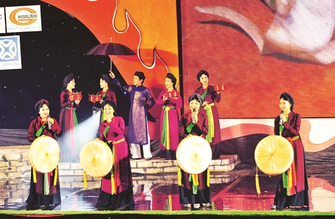 | La tunique à quatre pans est aujourd’hui réservée aux artistes des chants alternés. Photo : Thanh Hà/VNA/CVN |