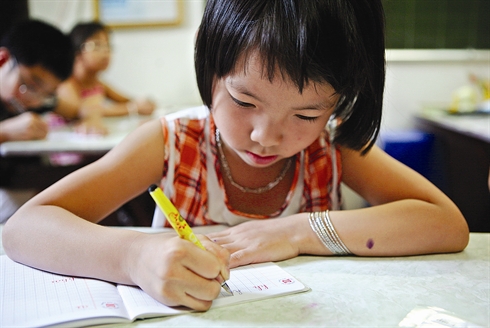 | Thu Giang, de Dà Nang (Centre), s’initie au tracé des belles lettres. |
