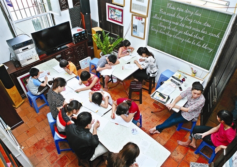 La classe du maître Duong Thanh Tuân, spécialisé dans l'enseignement de la belle écriture, existe depuis plus de dix ans. Le maître est connu de nombreux élèves et enseignants de différentes écoles du pays.
