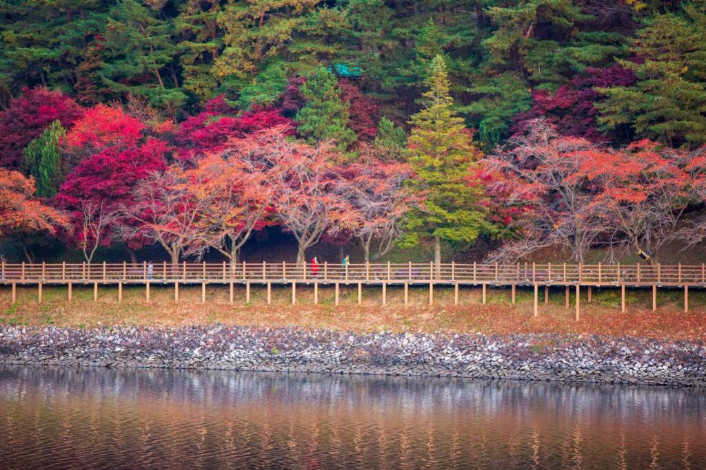 | Des touristes profitent du paysage automnal à Andong, dans la province de Gyeongsang du Nord, en République de Corée, le 28 octobre 2022. |